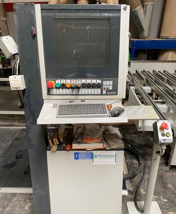Stroj omogoča obdelovanje elementov iz zgornje in spodnje strani oziroma obdelovanje dveh elementov hkrati. Poleg tega vsebuje enoto za zabijanje in lepljenje moznikov. Enota je sestavljena iz vibracijske posode za moznike, dveh enot za vstavljanje moznikov in visokotlačnega sistema lepila.
