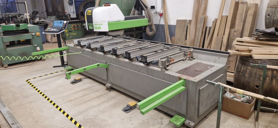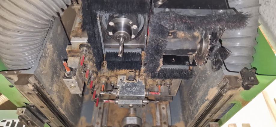 Delovni agregati: rezkalni agregat 5,6 kW, vrtalni agregat 19 svedrov (13 vertikalnih + 6 horizontalnih vreten + žagica v X in y smeri)
