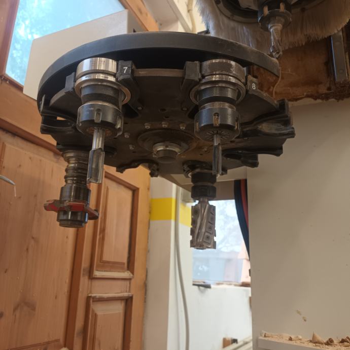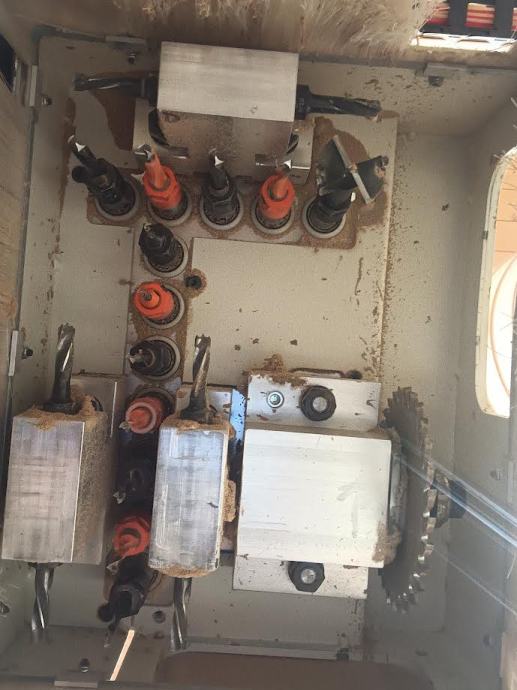 8 pozicij orodja , polno opremljena glava za mozničenje, 3x kotna glava, žagica za utore , sveder fi 35 , možnost dokupa popolnoma nove kotne gglave HSD na 2 izhoda
