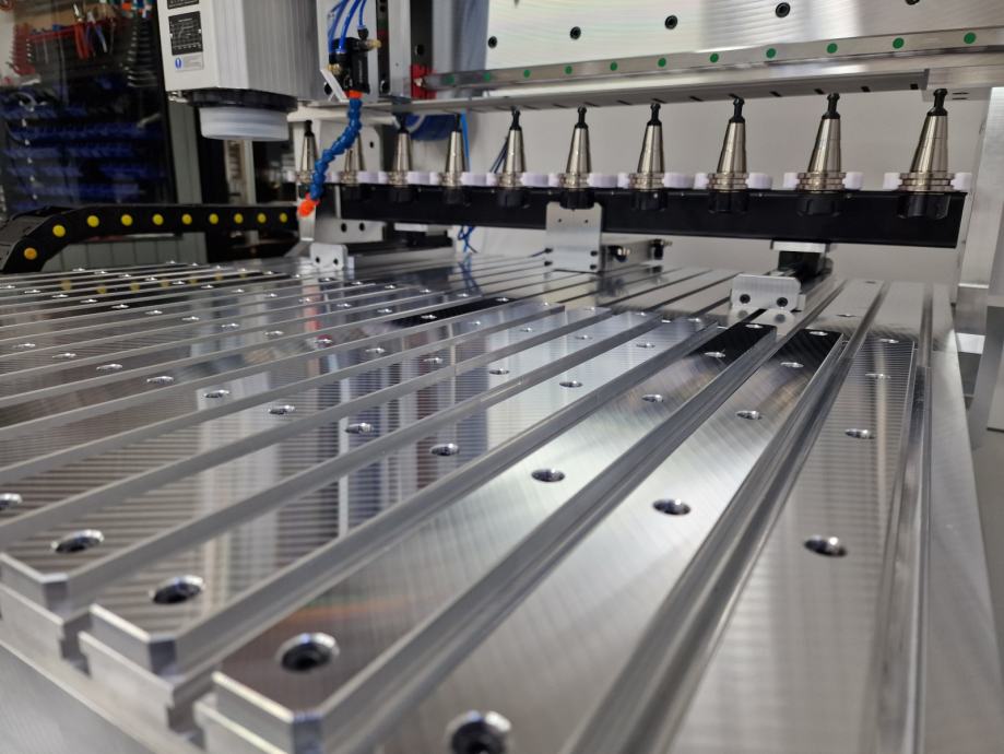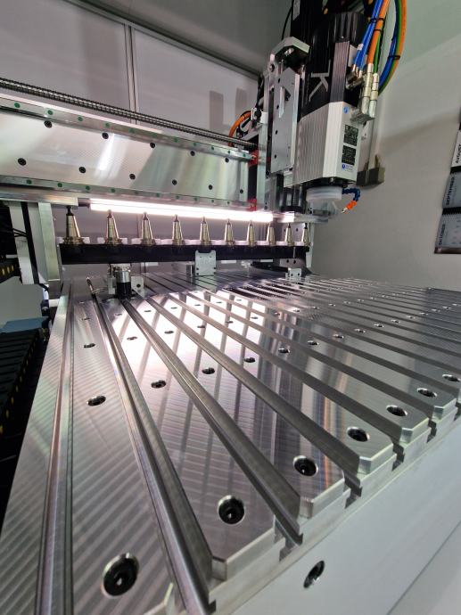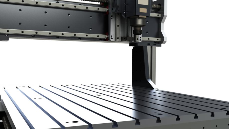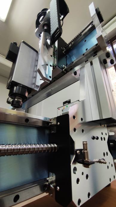 Dodano vrednost stroja predstavlja tudi prav posebno konstruirana X-aksa, ki ni narejena iz exstrudiranega profila kot pri večini CNC-strojev takšnega razreda ampak je sestavljena iz aluminijastih plošč, ki omogoča še večjo togost.