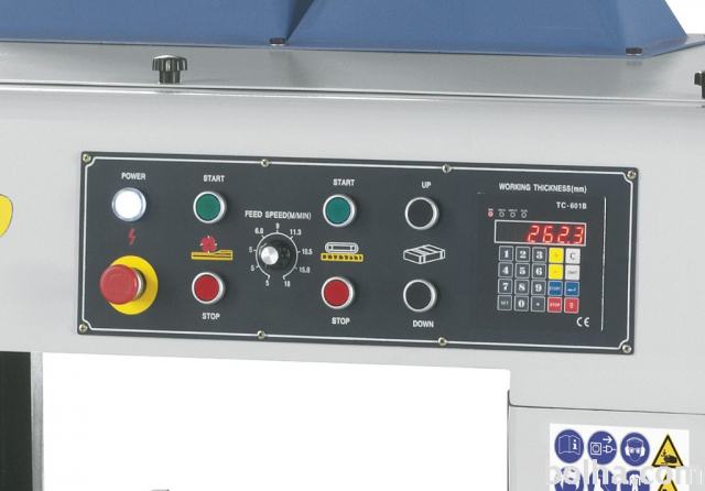 K STANDARDNI OPREMI STROJA SPADA VARIATORSKI POMIK VLEČNIH VALJEV, SEGMENTNI VSTOPNI VLEČNI VALJ, 2 kom GNANIH RAZBREMENILNIH VLEČNIH VALJEV V PLOŠČI DEBELINKE NASTAVLJIVA PO VIŠINI, ELEKTRIČNI DVIG/SPUST DEBELINKE Z DODATKOM ROČNE NASTAVITVE, CNC REGULACIJA NASTAVITVE VIŠINE SKOBLJANJA, DVIG/SPUST PLOŠČE DEBELINKE PREKO 4-kom NAVOJNIH VRETEN, BLOKADA VIŠINE DELOVNE PLOŠČE, DIGITALNI PRIKAZ VIŠINE SKOBLJANJA, ELEKTROMOTOR Z ZAVORO,....