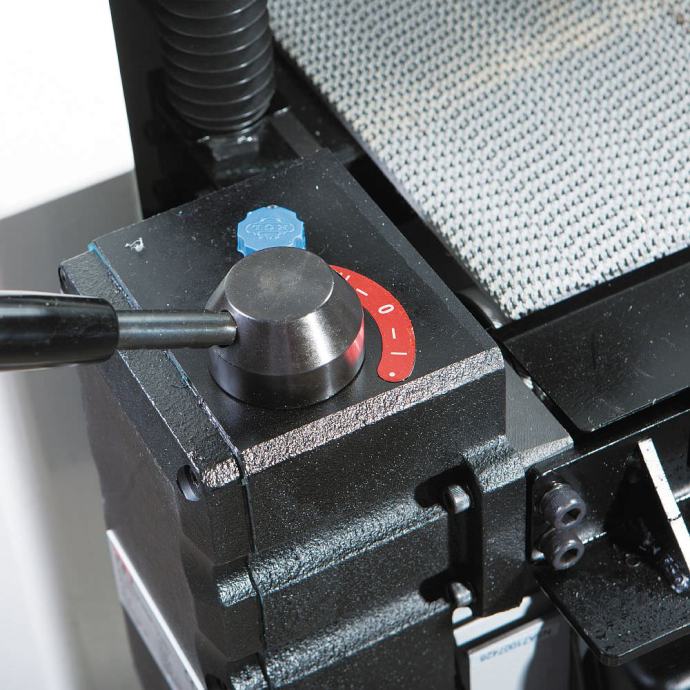 Ogromna konstrukcija, močan motor, dva brusilna valja in hitrost podajanja 2 in 3 m/min pomagajo peskati skoraj 1,5 mm z obdelovanca debeline 0,8 mm do 133 mm, samo z enim prehodom. Obe hitrosti lahko kosita skobljanje s točnostjo 0,2 mm v celotni širini brušenja. Natančno prilagajanje odstranjevanja materiala nastavi ročno kolo z digitalno lestvico za večjo natančnost. Dve odprtini za odsesavanje 100 mm zagotavljata zadostno odsesavanje med brušenjem.
