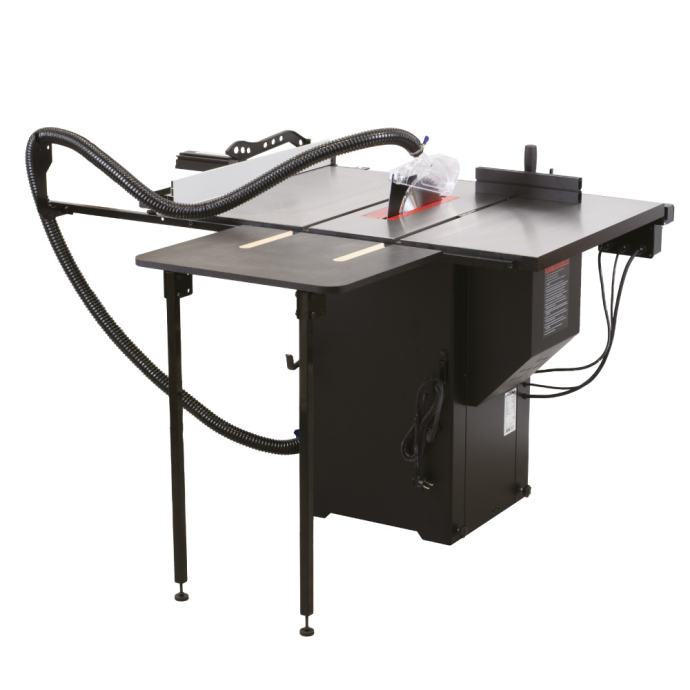 Krmilna kolesa iz litega železa z zložljivim ročajem in zaklepom zagotavljajo lahek in natančen nagib rezila do 45° ter premikanje gor in dol. Žaga je opremljena z natančnim digitalnim indikatorjem kota žaginega lista z osvetljenim zaslonom, ki je s sprednje strani vgrajen v telo žage. Pametna zasnova omogoča odsesavanje prahu iz spodnjega dela žage in rezila. Opremljen je s 100 mm odprtino za odsesavanje prahu.