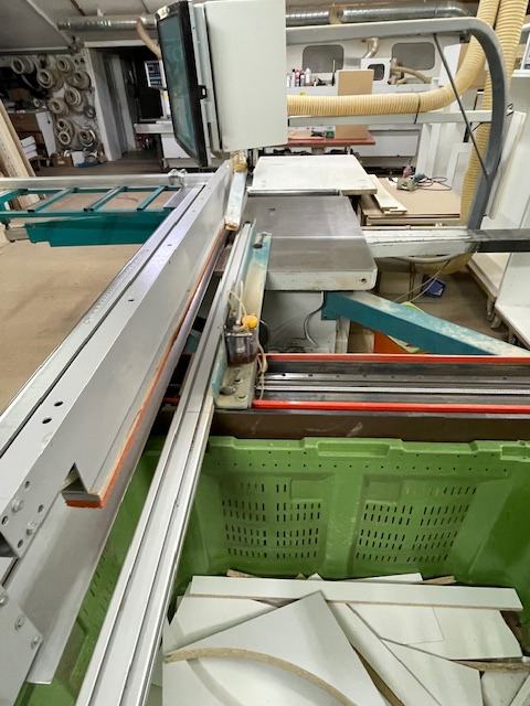 Formatna žaga je v uporabi v delavnici, tako da deluje brez problema, dokupljen je bil most pnevmatski za stisk materiala in s tem lažji,varnejši in točnejši rez. dodelan je tudi računalniški pomik desne mase in dolgo vodilo.to ni lahek kitajski stroj, je pa rabljen in ni nov.Prodaja se zaradi nakupa nove razrezovalke.