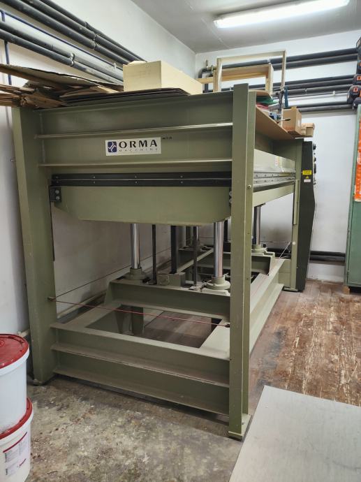 Lepo ohranjeno in malo rabljeno hidravlično stiskalnico Orma 4/70, 60 ton pritiska, plošče 250/130/40 cm, bruto mere 310/160/180 cm, vodno ogrevanje, prvi lastnik, ugodno prodam
