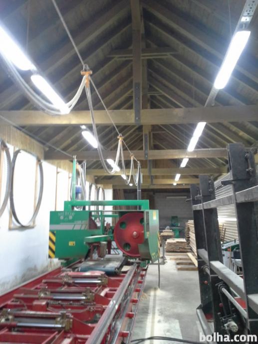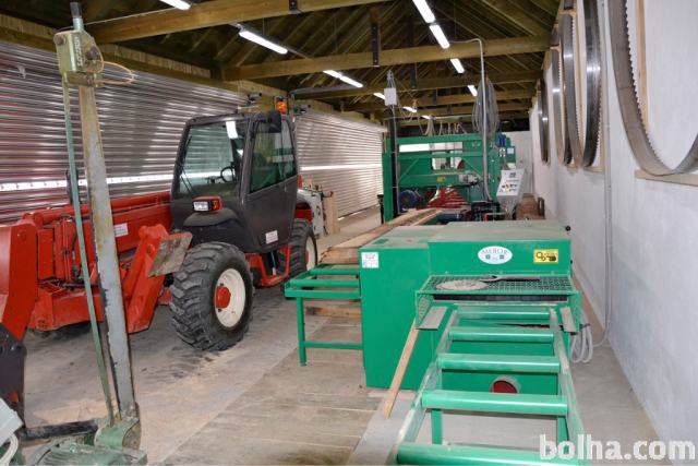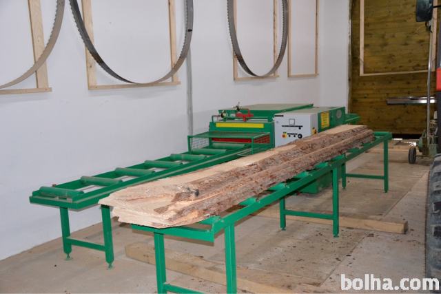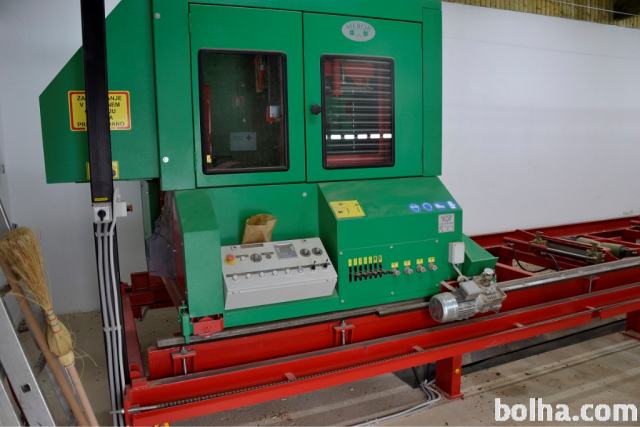1. stroj za dodatno obdelavo okroglih brun MEBOR SBO350, letnik 2013, z vhodnim in izhodnim valjčnim transporterjem. Stroj omogoča hitrejšo obdelavo brun, saj se lahko vzporedno bruna stružijo na SB420, hkrati pa se na stroju SBO 350 izdelujejo dodatne obdelave (čeljenje, izvrtine, križi, ciri ipd.), cena 15.000€ + DDV