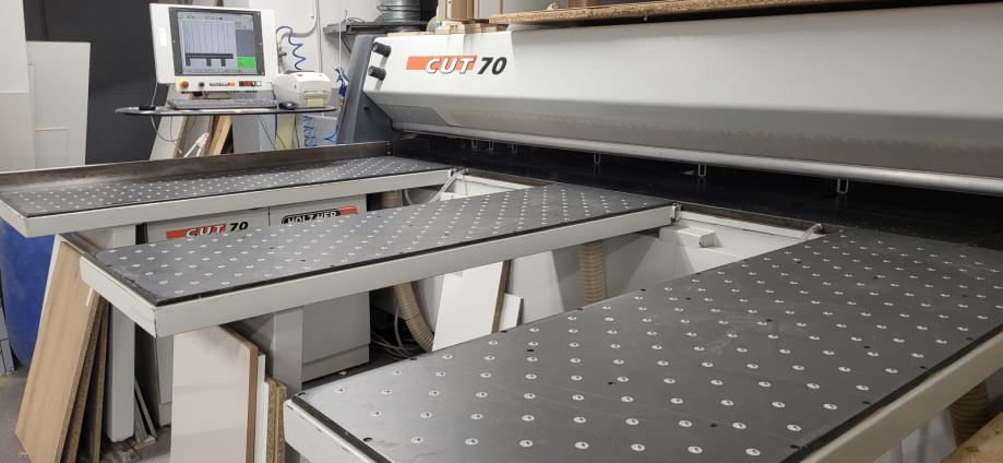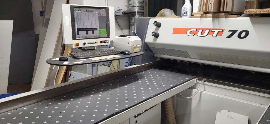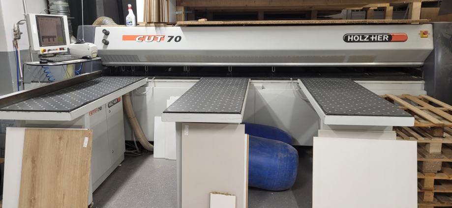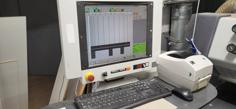 Razrezovalka ima obdelovalno površino š 3800 x 3200, novo bočno poravnavo, na novo umirjene klešče, novo uležajenje na linearnih vodilih, nov računalnik ter program delujoč z t.i. dongl ključem, torej enak način delovanja kot nove Holzher razrezovalke, tiskalnik etiket, dva dia predrezkarja, tri rezila Kanefusa, razrez min 100 plošč z enim brušenjem, termični tiskalnik etiket, večji LCD, vse delujoče, brezhibno.