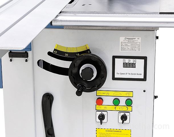 AGREGAT REZKARJE JE NAGIBEN DO 45st. NAZAJ, KAR ZAGOTAVLJA ODLIČNE IN VARNE POGOJE DELA. OS REZKARJA JE PRMERA 30 mm, 1800/3000/6000/9000 obr/min. VODILA ŠČITNIKA ZA PROFILIRANJE SO IZ AL-VODIL, OBOJE VODIL JE PREMIČNIH NAPREJ/NAZAJ KAR ZAGOTAVLJA MAXIMALNO NATANOST PRI NASTAVITVI ODVZEMA REZILA, IN OSEBNO VARNOST UPORABNIKA STROJA. MOČ MOTORJA V S6 IZVEDBI JE 3,9 KW (5,3 KS). SERIJSKO LEVO-DESNO VRTENJE OSI REZKARJA, DIGITALNI PRIKAZ ŠTEVILA OBRATOV REZKARJA.