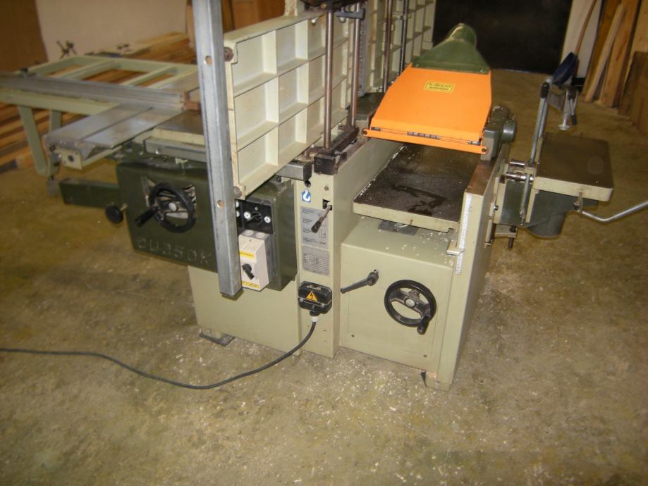 Prodam , mizarsko kombinirko SCM mini-max CU 350 K , ima pet operacij , aluminijasti voz dolžine 150 cm z možnostjo odreza 200 cm, poravnalka in debelinka širina 350 mm , žaga z nagibom 45°, premer žage do 300 mm , osovina rezkarja 30 mm ima štiri hitrosti 1400 , 3500 , 6000 , 8000 obr./min. , zraven dodam še nekaj žag , rezkarje za izdelavo masivnih vratic in nekaj drugih .