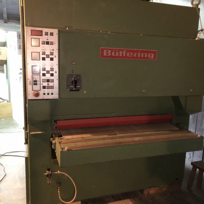 Prodam rabljeno kontaktno brusilko Butfering AWS 3 - 1350mm širine z tremi brusnimi agregati. 1 agregat je kalibrirni valj, 2 agregat je kombiniran in sicer brusni valj in tanpon, ter 3 agregat tanpon, na koncu pa je še čistilna krtača. Stroj dela brez problema, dimenzije stroja so 2930x2000x2500mm, ter ima 4500kg. Možna menjava za viličar oz kak drug stroj.