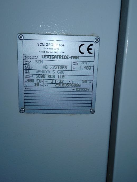 Na voljo je vrhunska industrijska kontaktna brusilka znamke SCM, model SANDYA S600 RCS 110, primerna za natančno brušenje masive, furnirjev in drugih materialov.