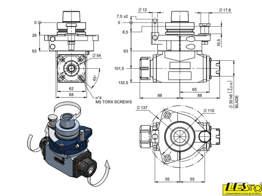 HITECO kotni agregati so izredno natančni. Namenjeni so horizontalnemu vrtanju, rezkanju ali žaganju. V standardni konfiguraciji se pritrdijo z HSK63-F konusom, na strani kjer se namesti orodje pa je ER32 puša.