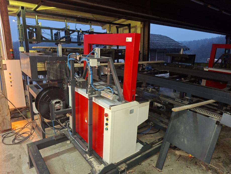 Verizni transporter, prečni odlagalnik, ločevanje, oblikovanje snopov, vezanje snopov s stiskalnico, pretočni čelilnik, obračalna naprava, avtomatsko skladanje, polagalec letvic
