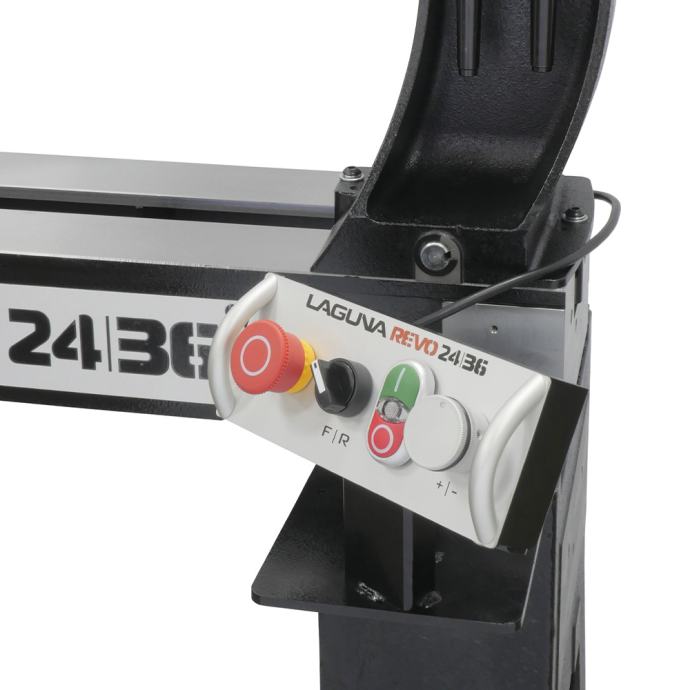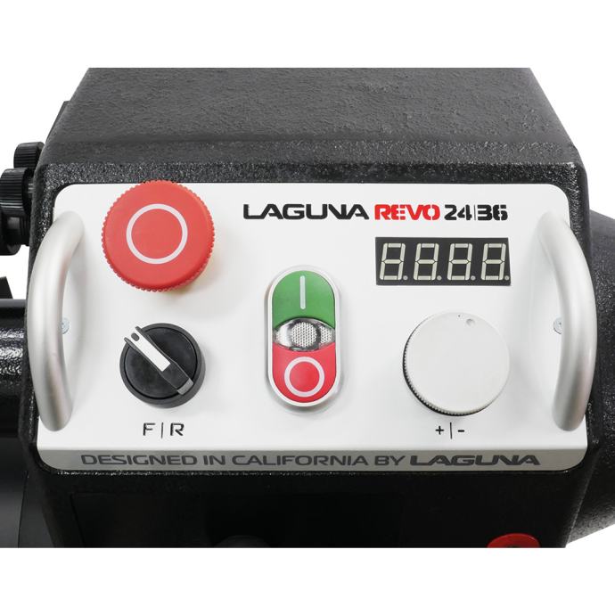 Posebnost stružnic Laguna REVO je nadzorna plošča iz eloksiranega aluminija z duraluminijskim dizajnerskim izbirnikom hitrosti. Nadzorna plošča ima modro osvetljen indikator izbrane hitrosti frekvenčnega pretvornika in skupaj z lepo oblikovanim krmilnikom sporoča, da ne gre za navadno stružnico.