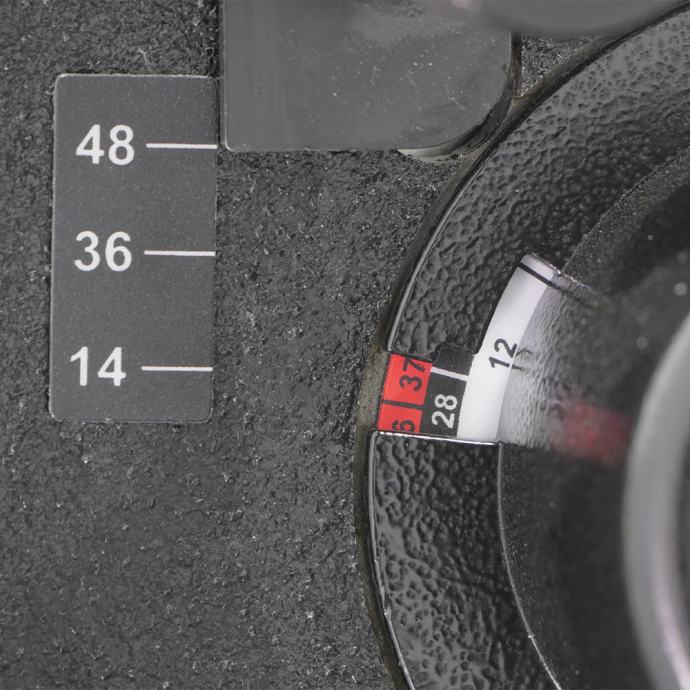 • Gladko premikanje živega središča z lasersko vgravirano lestvico.