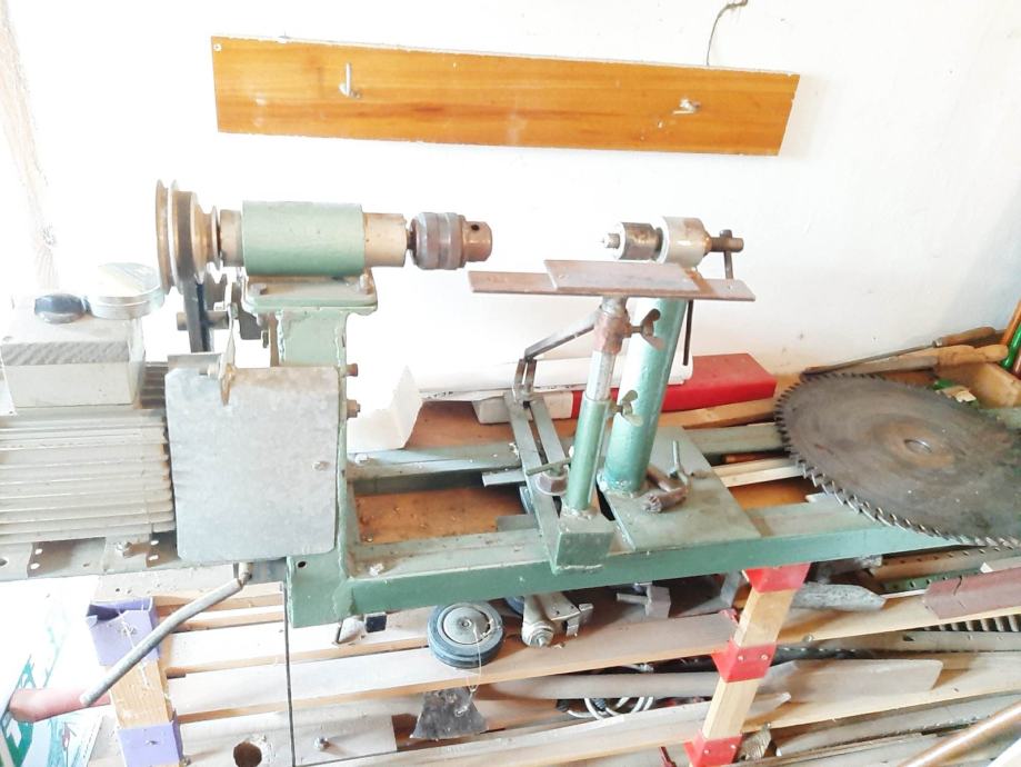 Prodam stroj za obdelavo lesa za struženje večjih kosov lesa. Dolžina vodila je 140 cm. Električni motor na trifazni tok.