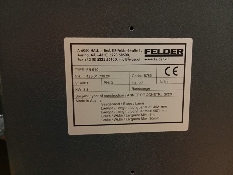 Tračna žaga Felder FB 610 priznanega Avstrijskega proizvajalca lesnoobdelovalnih strojev Felder Group.