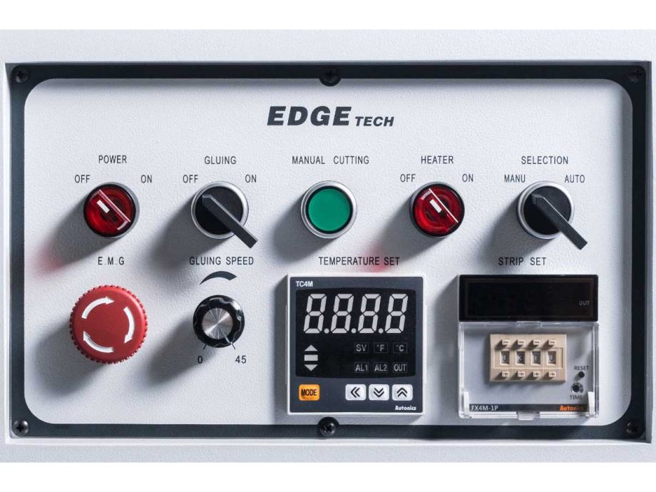 Stroj omogoča dva načina delovanja in sicer obdelavo ravnin ali pa obdelavo ukrivljenih delov, z naravnim trakom in sintetičnim valjnim materialom. Avtomatizirana dobava robnega materiala na območje lepljenja iz revije.