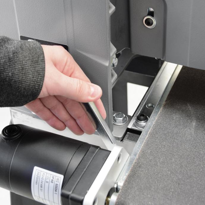 Točnost brušenja je zagotovljena z robustnim ohišjem bobna. Motor transporterja je nameščen na zadnji strani žage in omogoča, da potisnete gibanje.