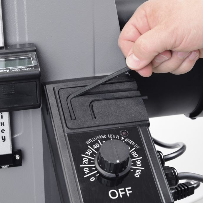 Intellisand tehnologija samodejno prilagodi hitrost podajanja, tako da zagotavlja enakomerno površino, tudi z različnim vzorcem in gostoto zrna. Pomeni, da obdelovanca ne bodo opekli, raztrgali ali poškodovali. Na novo oblikovan turbo možnosti odstranjevanje prahu poveča dotok zraka v odsesovalno napravo za 15 %.