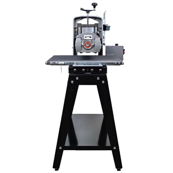 Natančnost brušenja zagotavljata robustno ohišje bobna in popolna vzporedna nastavitev med transporterjem in bobnom. Samo ena matica prilagodi transporter tako, da je vzporeden z brusilno glavo, zato je poravnava transporterja z brusilno glavo hitra in enostavna. Motor transporterja je nameščen na hrbtni strani brusilnika in zagotavlja vlečno gibanje namesto potiskanja. Zelo širok (558 mm) transporter je zasnovan tako, da ustrezno podpira obdelovance, širše od 482 mm. Natančno izravnana jeklena posteljica transporterja, ojačana s štirimi jeklenimi prečkami, zagotavlja ravnost do manj kot 0,25 mm po vsej širini brusilnika.