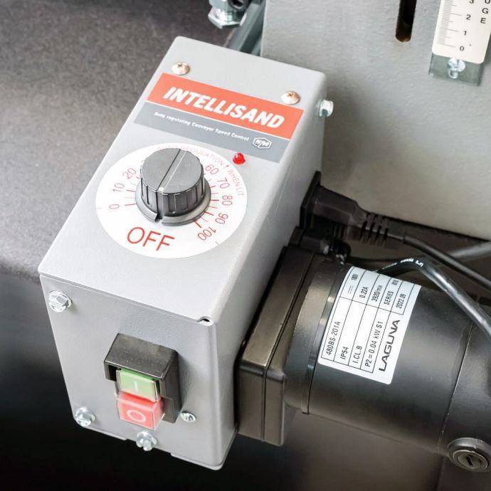 Tehnologija Intellisand samodejno prilagaja hitrost podajanja, da zagotovi konsistentno končno obdelavo tudi pri različnem vzorcu in gostoti zrn. To pomeni, da ne prihaja do zažiganja, odtrganin ali poškodb obdelovanca. Abrazivni transportni trak zagotavlja najboljši oprijem surovega lesa, kar vam omogoča, da se lahko prilagodite tudi precej krajšemu ali tanjšemu materialu. Patentiran sistem za pritrditev abraziva učinkovito napenja abraziv, kar preprečuje rahljanje in prekrivanje. Najlažji dostop do pritrditve brusilnega materiala med vsemi bobenskimi brusilniki. Izjemno širok prostor odpravlja potrebo po posebnem orodju!