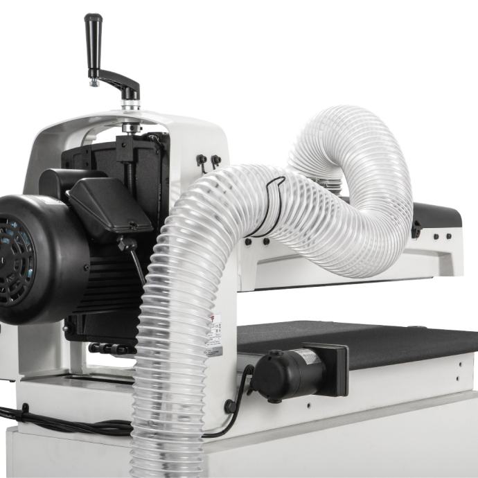 Krmilnik Sandsmart ™ neprekinjeno nadzoruje obremenitev na motorju bobna in samodejno uravnava hitrost motorja tekočega traku, da ohrani najvišjo hitrost podajanja brez preobremenitve. Prenovljen transportni sistem potegne obdelovanec skozi brusilnik, namesto da bi potisnil. Ostrožek je praktično odstranjen zahvaljujoč nastavljivim napenjalnim valjem, ki na obdelovanec pritiskajo navzdol. Pokrov za prah vključuje integriran kanal, ki odraža obliko bobna in usmerja ostružke in prah v 4 "zbiralna vrata.