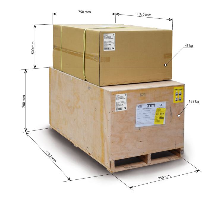 • Dimenzije paketa - stroj: 1320 x 750 x 700 mm