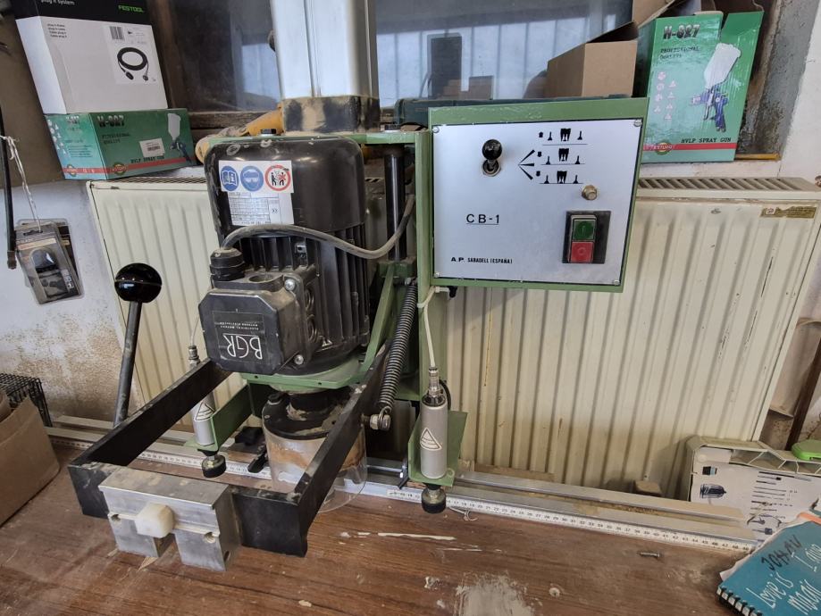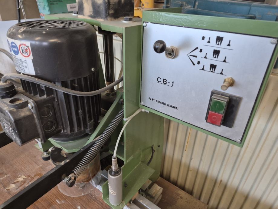 Prodam 3 fazni vrtalni stroj za pante. Ima vnevmatsko vpetje obdelovanca. Dodate lahko glavo z možnostjo vpetja več svedrov in jo uporabljate za vrtanje luknjic za police. Brezhibna. Prodam zaradi neuporabe