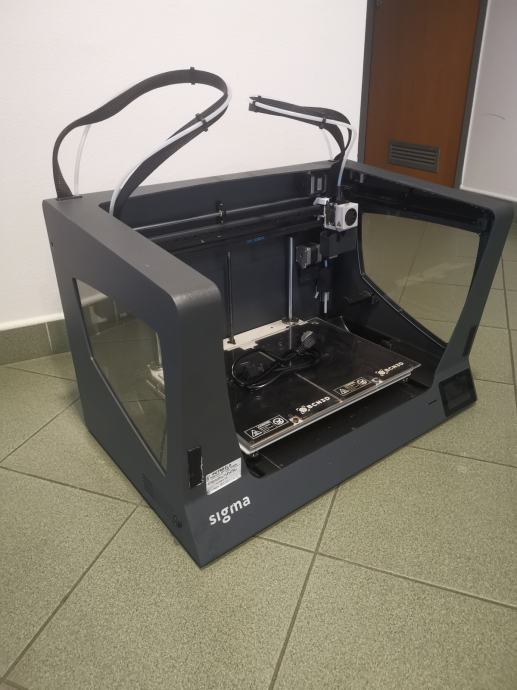 Prodam 3D tiskalnik BCN3D Sigmax R19. Naprava ima nameščeni dve brizgalni glavi (extruder-ja), uporablja filamente premera 2,85mm in ima stekleno mizo, ki je na nekaterih delih delno obrabljena. Tiskalniku je dodana tudi zaščitna komora izdelana iz pleksi stekla. Pred začetkom dela tiskalnik potrebuje tudi nekaj nastavitev. Če ste zainteresirani pošljite mail na miha@lupitpole.com, pošljite SMS ali pa pokličite na številko +386 70 621 285.