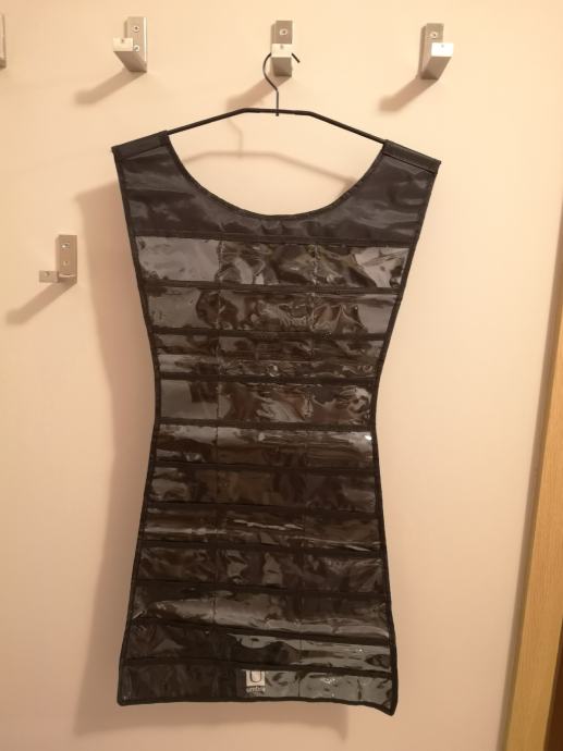 Prodam nov obešalnik za modne dodatke. Na eni strani so prozorni predalčki, na drugi pa zanke na ježka.