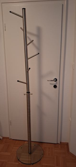Prodam rabljen, a nepoškodovan sodoben obešalnik. Premer steklenega stojala je 40 cm. Cena 25€.