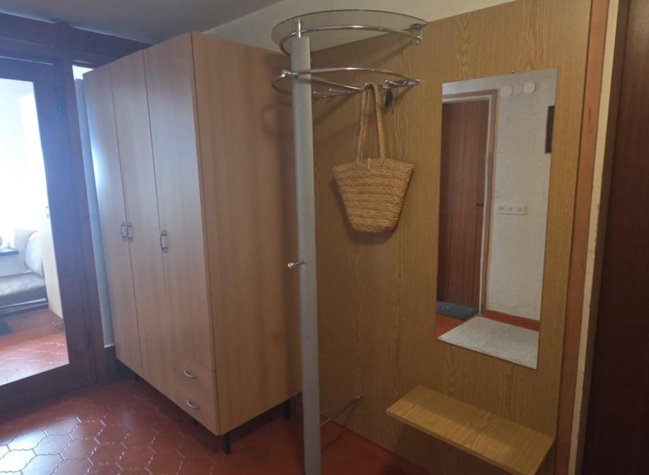 2x večjo omaro (na sliki le ena) ter garderobno steno z obešalnikom, ogledalom in poličko.