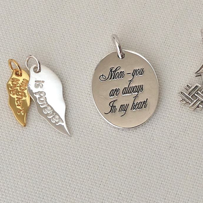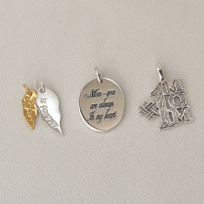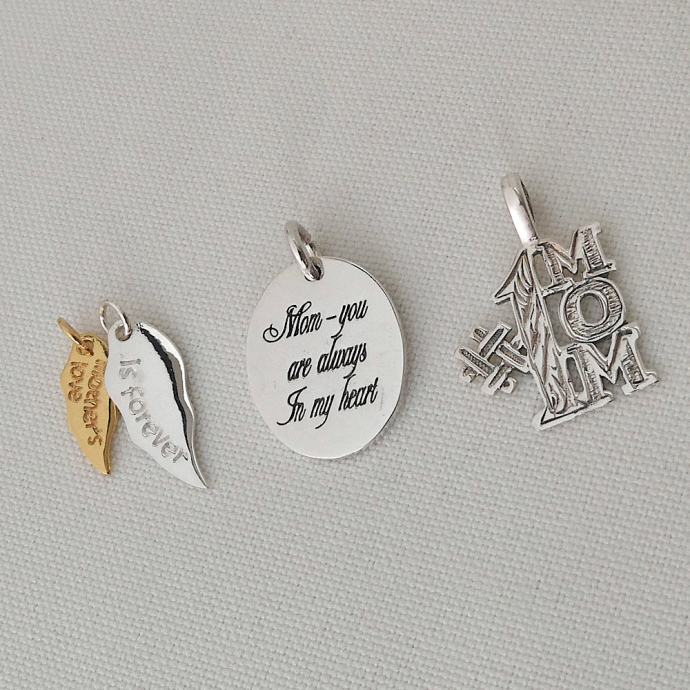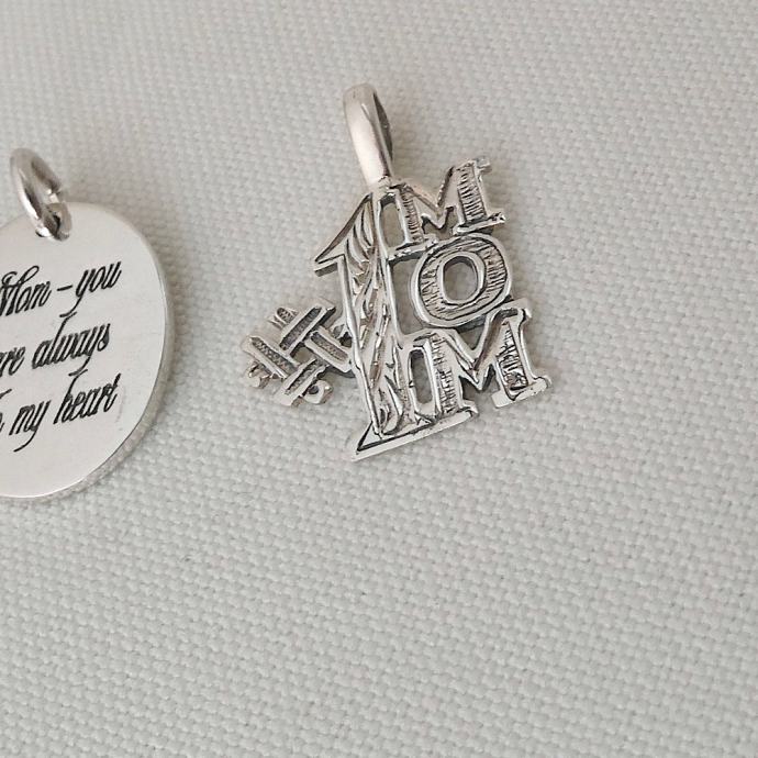 2. Ovalni z napisom “Mom - you are always in my heart”, dolžina 2.3 cm