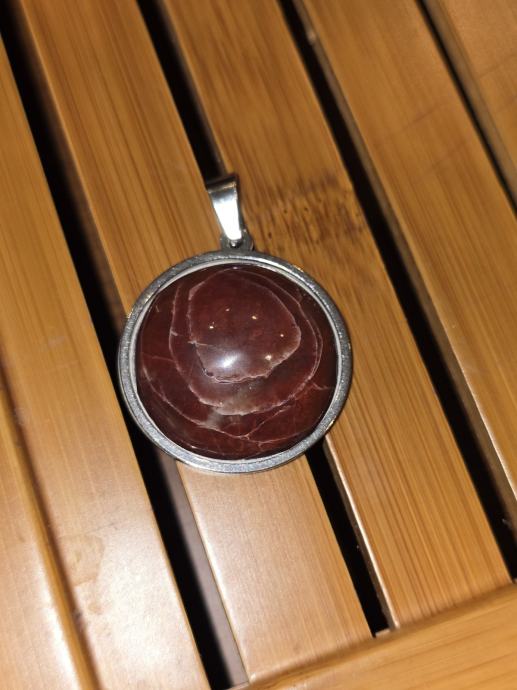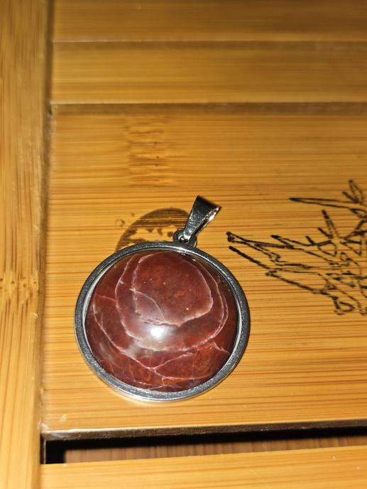 Prodam kabošon obesek iz pravega rdečega jaspisa, ročno narejen kabošon, podloga nerjaveče jeklo.