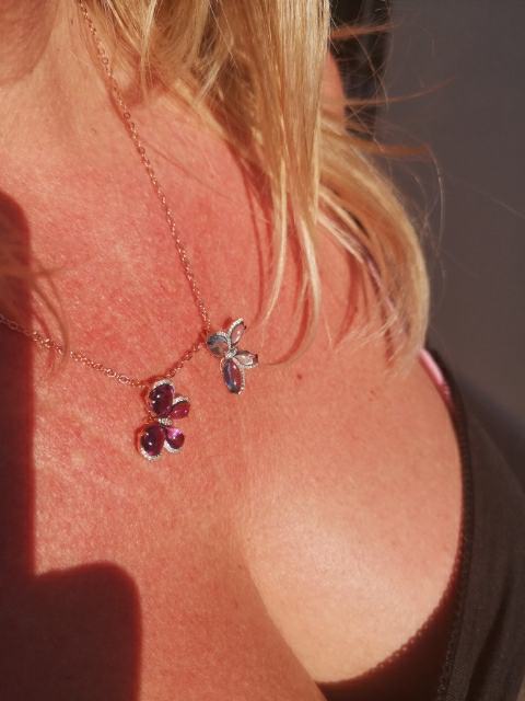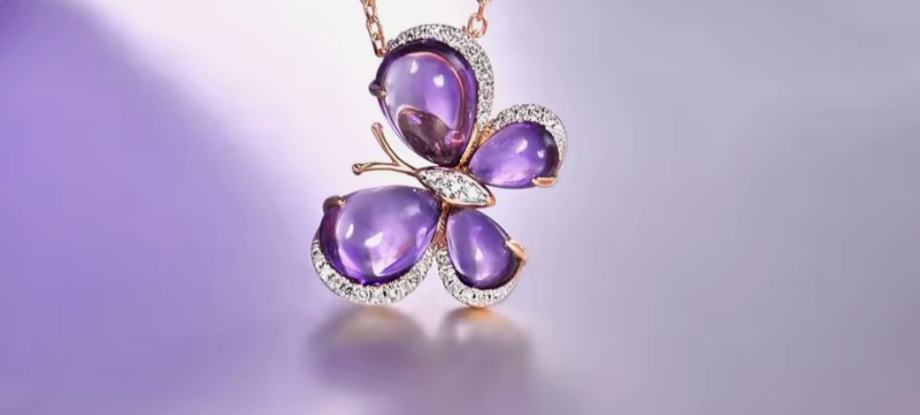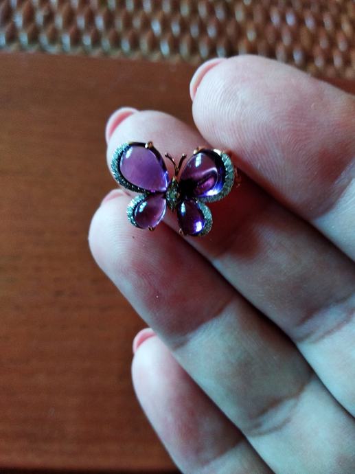 Prodam zlat obesek 14KT (585) zlato z 37 diamanti in 4 ametisti, brušenimi kabošon. Novo. 041 313 177.