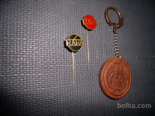 Obesek za ključe RABA iz naravnega usnja v rjavi barvi, z vtisnjenim logotipom RABA na eni strani in vtisom na hrbtni strani. Prijeten na otip.