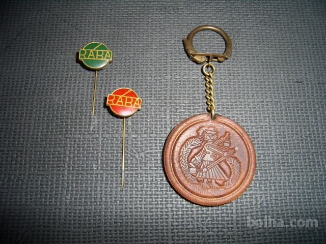 Obesek za ključe RABA iz naravnega usnja v rjavi barvi, z vtisnjenim logotipom RABA na eni strani in vtisom na hrbtni strani. Prijeten na otip.