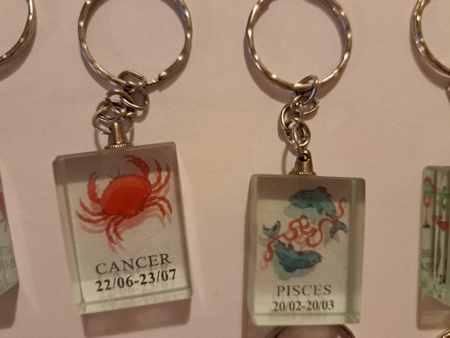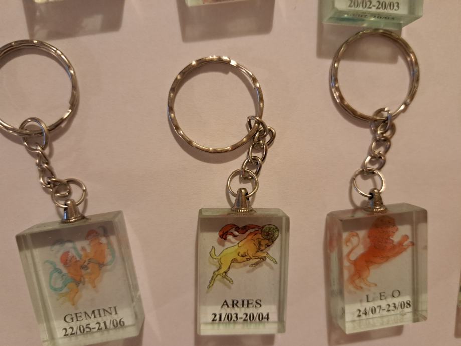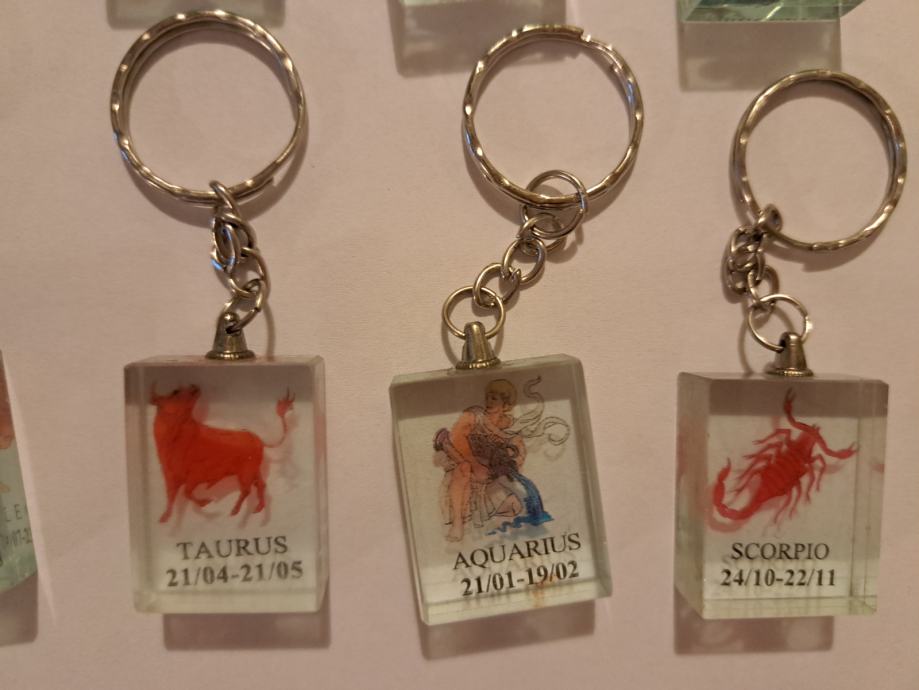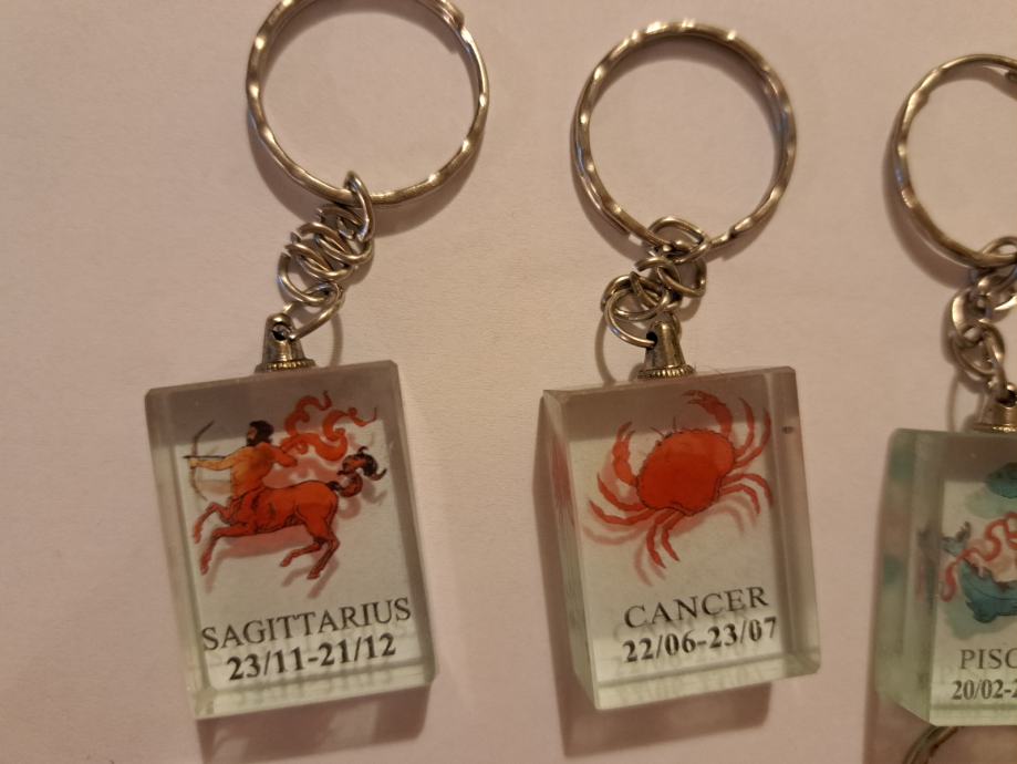 Na voljo je moja zbirka obeskov za ključe z motivi iz horoskopa.