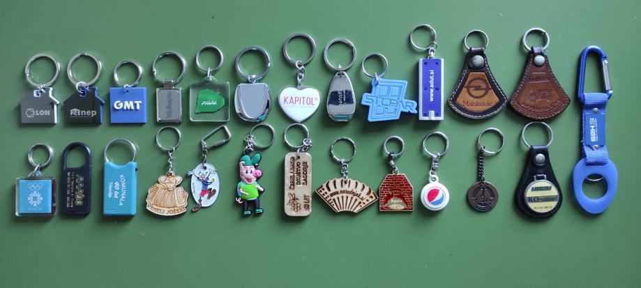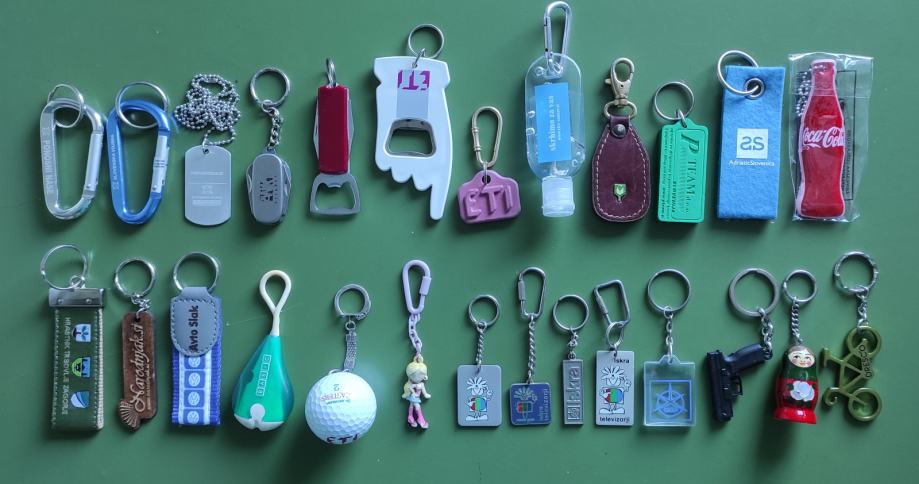 Prodam 60 obeskov za ključe - glej slike - v glavnem popolnoma novi, ostali lepo ohranjeni, 5 x obesek USB ključ-nedelujoč, zelo zanimivo za zbiralce.Prodam samo v kompletu.