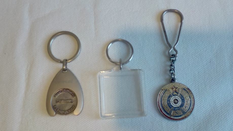 Obeski za ključe:Zavodi Crvena Zastava 120 g. (1853-1973), Sloboda-Velika Gorica 30 g. (1947-1977), Fabrika Motora Sarajevo-FAMOS 20 g. (1950-1970), Fudbalski klub Velež Mostar (1922-1972). Prodam obesek Studenac sa otvaračem za flaše, obesek Efaflex, obesek za fotografiu a obesek Streljački savez Jugoslavije. 10 e/kos. Prodám škatulku za vizit karte, 10 e. Sve za 80 e.