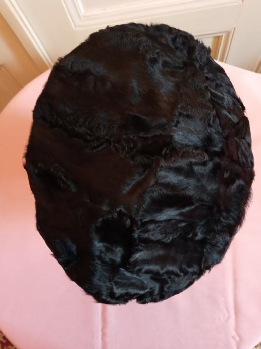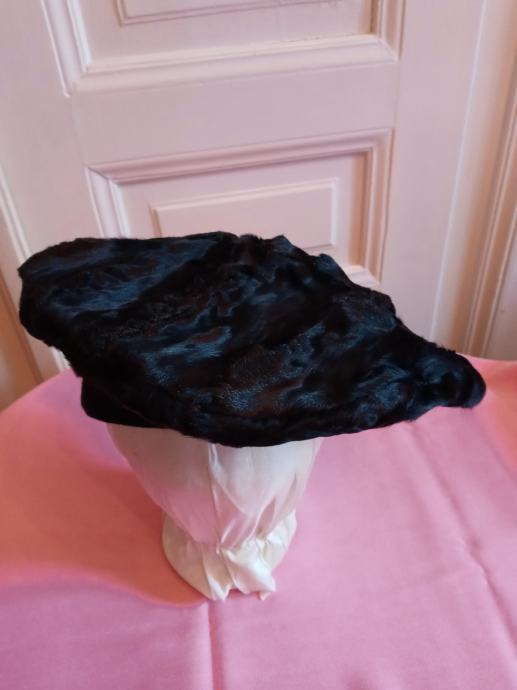 VINTAGE KRZNENA BARETKA (BARVANE LISIČJE TAČKE), VEČJIH DIMENZIJ, KAKRŠNE SO NEKOČ DAME NOSILE.