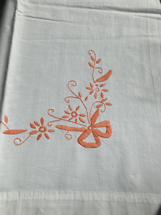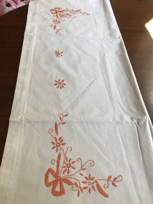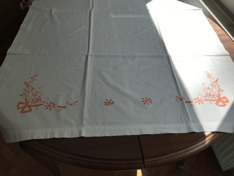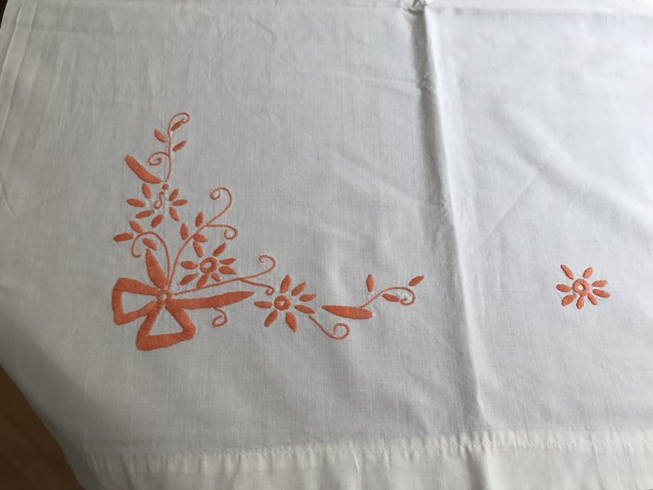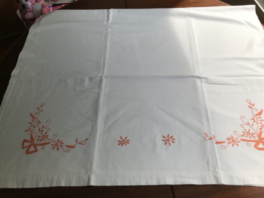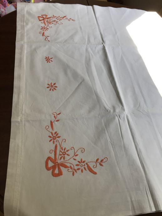 Prodam star platnen prt okrašen z enobarvno ročno vezrnino. Meri sta 150 X 96 cm,