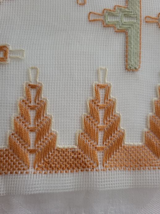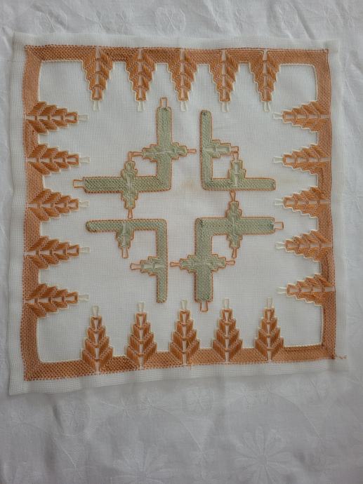 Ročno vezenje na prosojni tkanini, fino ročno delo.