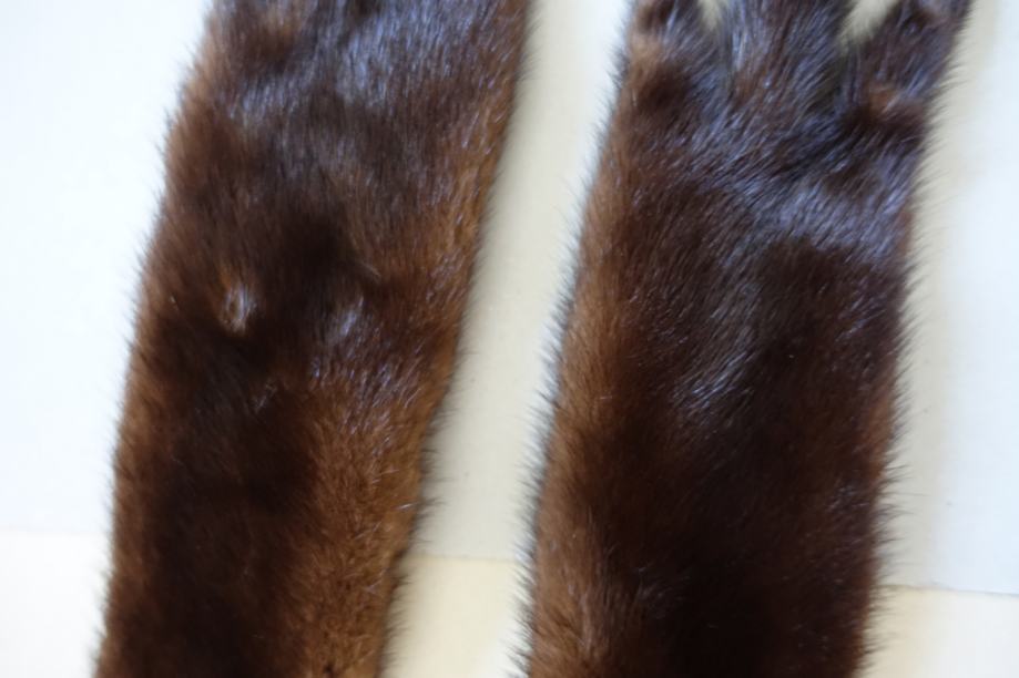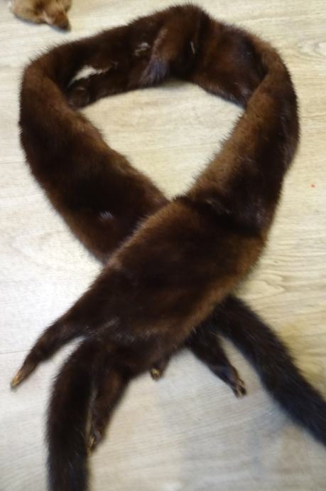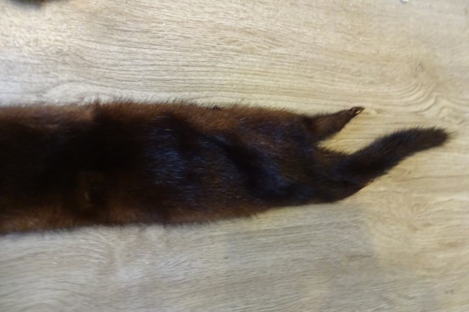 6,00 EUR - 130 cm, tu sta skupaj 2 kosa, v sredini zašita tako, da so tačke na levi in desni. Ta je zelo temne barve, verjetno ni kuna, je pa nekaj podobnega oz. ni običajna kuna