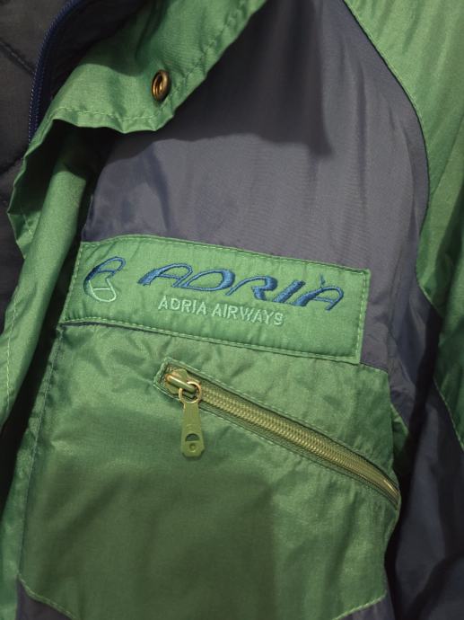 Prodam originalno vintage jakno Adria Airways, v značilni modro-zeleni barvni kombinaciji s prišitim logotipom ADRIA na prsnem žepu.
