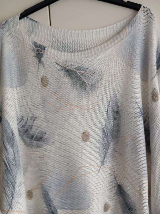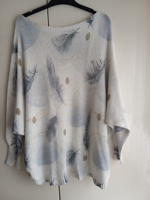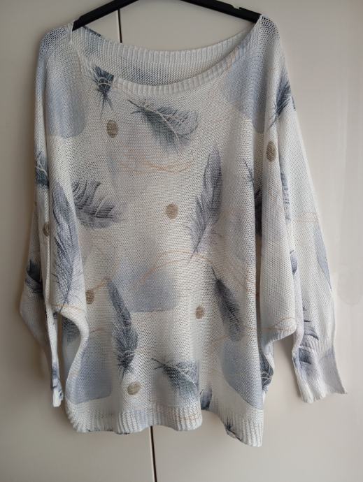 Zelo lepo ohranjen, krojen v obliki metulja, pleten, raztegljiv, od ene pazduhe do druge meri cca 58cm, dolžina je 60cm, ne menjam, ptt ni vključena v ceno, orig. oznaka vel. je M/L, realna vel. je 44/46