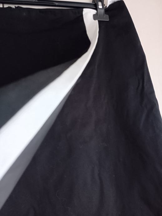 Nikoli nošeno, zelo kvalitetno, podloženo, ni raztegljivo, v pasu meri 52cm, boki so 60cm, dolžina je 54cm. Ne menjam, ptt ni vključena v ceno