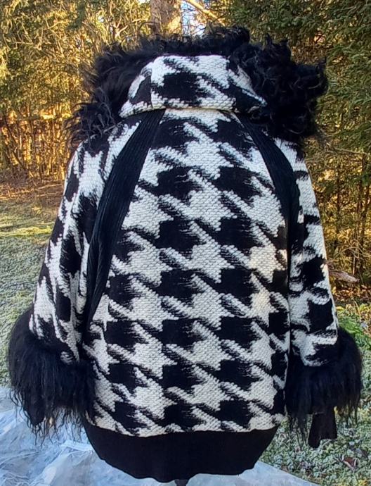 Črno-beli pončo s podlogo za ženske večje velikosti,