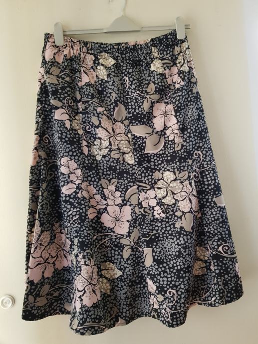 v pasu ima 3cm široko elastiko in meri 40 do 50cm, boki so 63cm, dolžina je 80cm